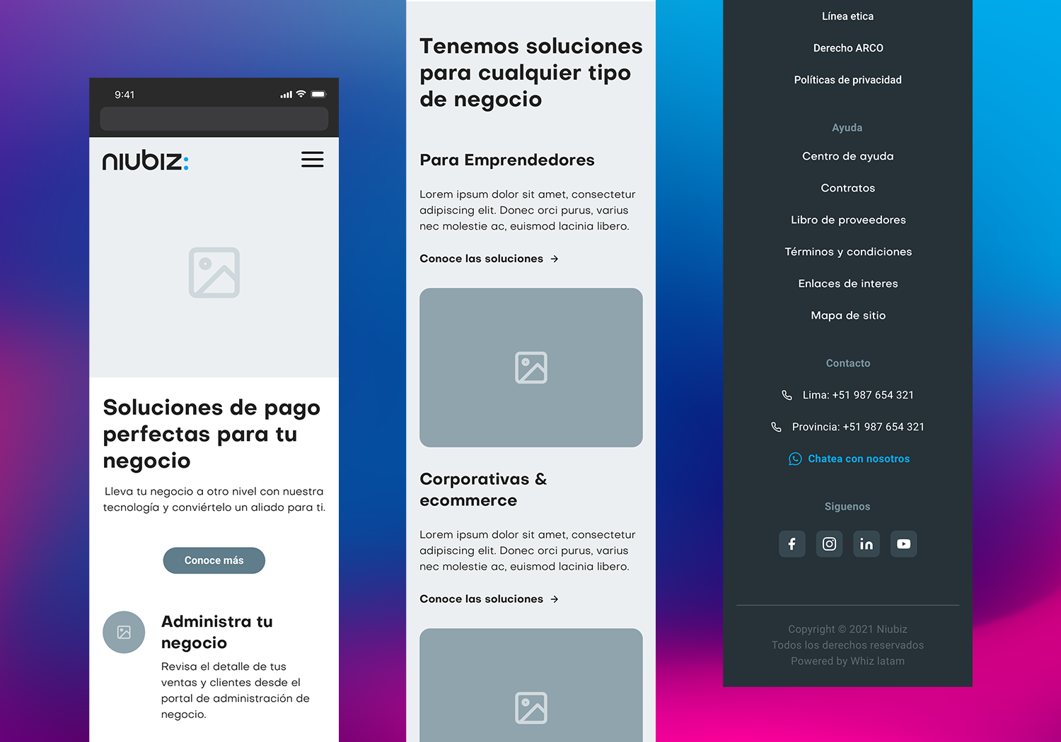 Cada unidad de negocio de Niubiz, manejaba una extensión de la web para diferentes fines; complicando la consistencia informativa y visual, aumentando el tiempo de gestión y entorpeciendo el proceso de mantenimiento de cada rama.